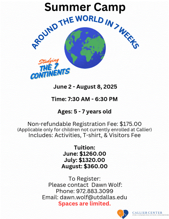 Non-refundable Registration Fee: $175 (Applicable only for children not currently enrolled at Callier) Includes Activities, T-Shirt, and visitors fee
