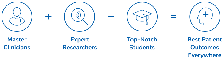 To receive the best outcome, a patient must have access to a master clinician who implements the best diagnostic tools and offers evidence-based and innovative treatment plans. These tools and treatments are discovered or developed by expert researchers in a lab. The power of research is that one lab can produce an innovation that can impact patient care in clinics everywhere. The opportunity to transform patients’ lives extends again when master clinicians and expert researchers train students, who graduate and disseminate their knowledge locally, across Texas and throughout the country.